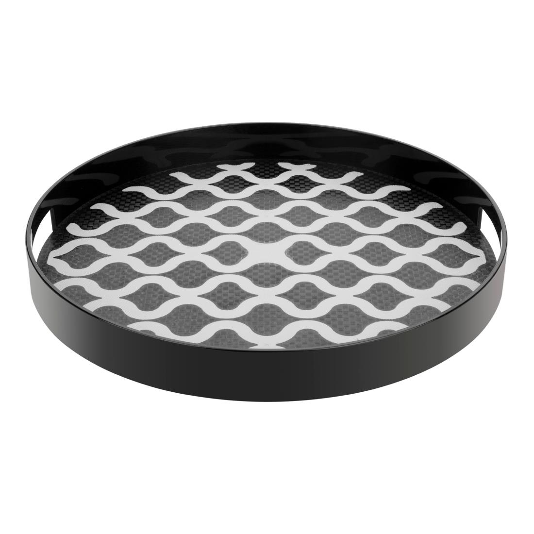 Olympia Kristallon Polycarbonate Round Non Slip Tray with Handles 355mm