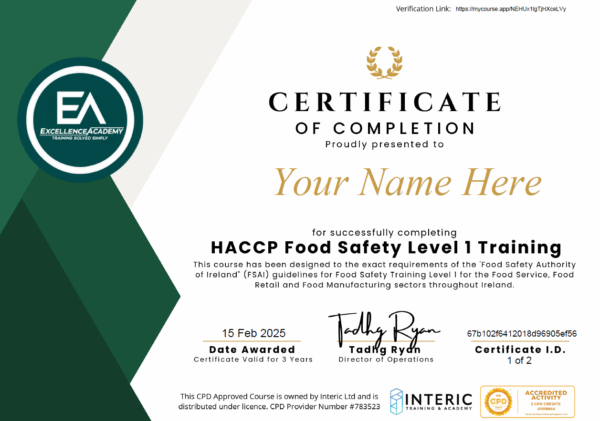 • Certified staff training (in person & online) via www.excellenceacademy.ie
